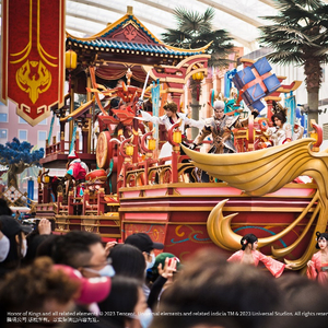 在今年的“北京环球影城:王者荣耀英雄盛会”上,限时回归的王者荣耀英雄巡游为现场游客及粉丝带来极具震撼的潮燃体验。巡游是一出长达30分钟的移动舞台剧,拥有超豪华的卡司阵容——11位英雄角色,还有数十位战士、舞者和旗手。故事以女帝武则天举行盛大的皇家巡游为背景,以“机关核”的争夺为导火索,展开三股势力之间的相互“厮杀”,游戏中令人耳熟能详的英雄角色,如狄仁杰、公孙离、司空震、李白等在恢宏花车上霸气亮相,剧情扣人心弦、跌宕起伏。