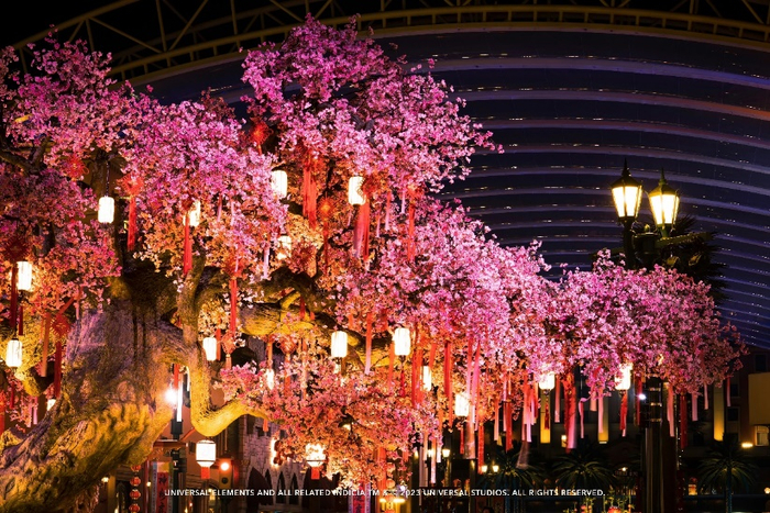 “环球中国年”期间环球新春许愿树坐落在好莱坞大道尽头。