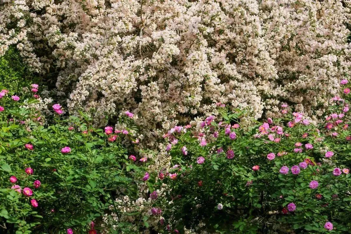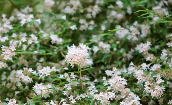 小小的,密密的,一团团,一簇簇,远远看去她柔软的枝条犹如细长的绣线,将这些可爱的花串在一起。也许这就是绣线菊名字由来的原因吧。