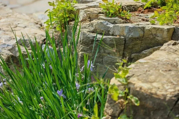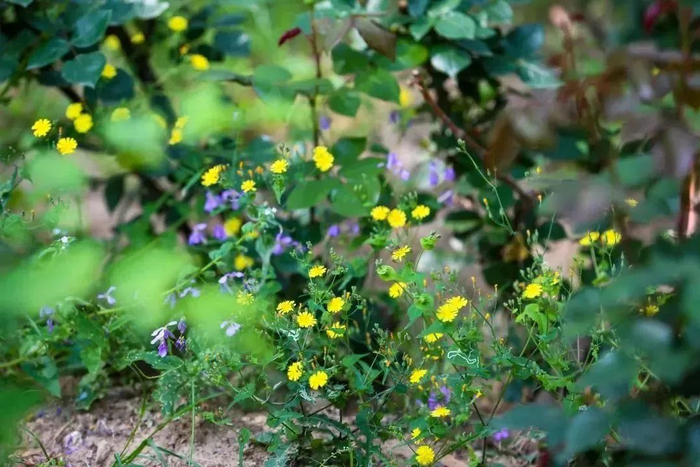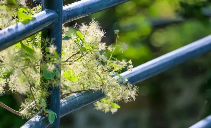 它们依靠自然的养分,带着清新绿意和小小的花朵一点点地开放着,给路人带来无限的欣喜。