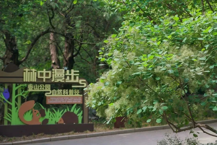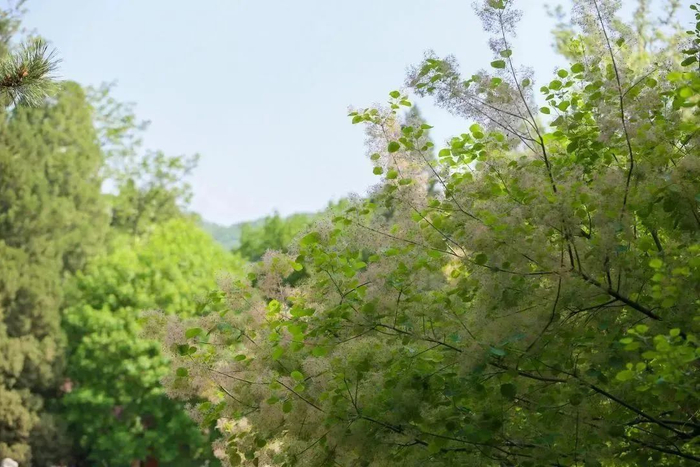 黄栌作为香山红叶的主要树种,秋季叶片变色后,丹黄朱翠、幻色炫彩。但少有人知的是,夏季黄栌开花也是非常美丽的。