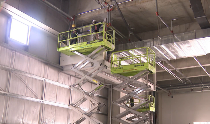 北京城建亚泰集团有限公司京东项目执行经理卢海峰告诉记者:“目前京东智能产园项目3号库和4号库已经移交给京东甲方,一库和二库目前正在进行灯具、开关面板及卫生洁具的安装。”