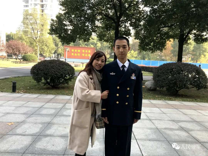 杨羿韬和母亲在海军工程大学的合影