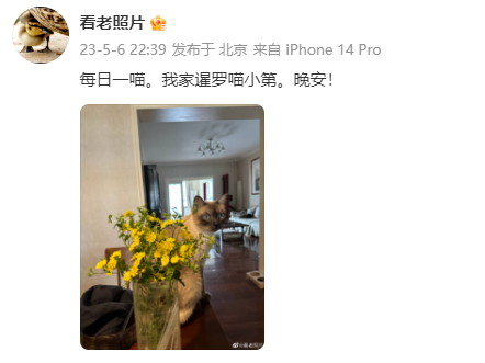 在微博上,人们发现,她还养了一只猫,有时候也跟大家分享猫咪的日常。