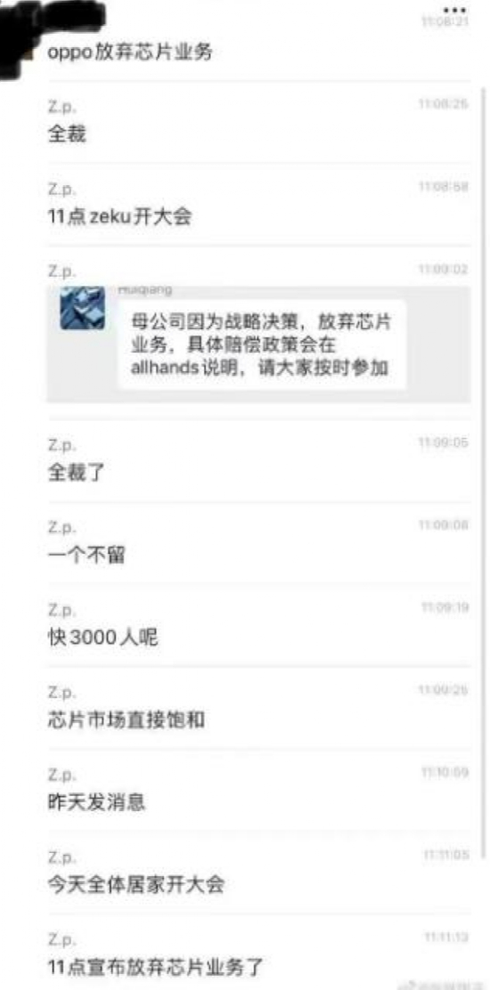 而根据网传截图图,此次裁员涉及人数或近3000人,有内部人士曝出更多裁员细节,称今日哲库全体居家开大会,11点便宣布放弃芯片业务,接近3000人的员工全部被裁。目前公司大门已锁、内网也已关了,保安都进不去。