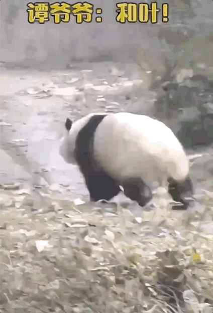 “精通”四川话的萌兰,幼年时听到呼唤会与爷爷无障碍交流,还会抄近路奔向爷爷↓