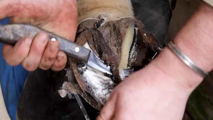 先用勾刀、老虎剪等工具将马蹄外厚厚的污垢组织削除,再用锉刀使其平整,然后用砂轮机打磨马蹄铁,最后安在马蹄上并钉好钉子……就是这样一条短短两分钟的“修马蹄”视频,在短视频平台上播放量达430万次,收藏数万次。