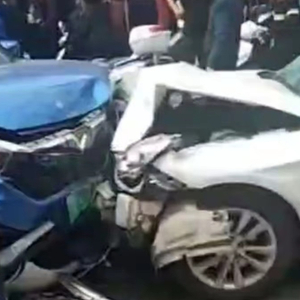 根据网友拍摄的视频显示,事故现场有一辆吕梁本地牌照的白色私家车、一辆标有“鑫源”标志的本地出租车以及一辆红色的私家车,三车车头均损毁严重。有伤者躺在路面上,还有几辆摩托车也被撞倒。另一段视频显示,疑似肇事司机被多名身穿制服人员扭送离开。