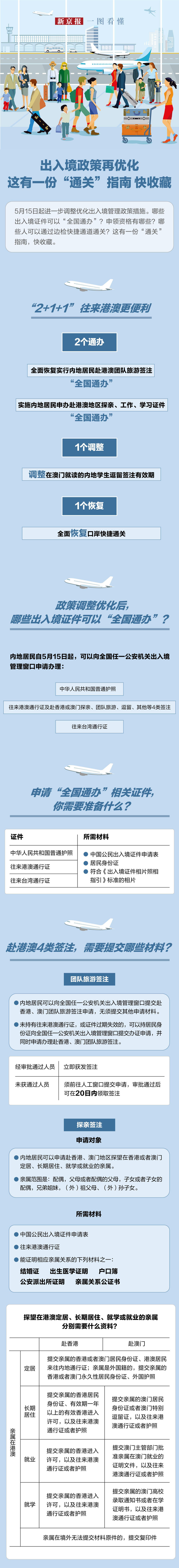 5月15日起,进一步调整优化出入境管理政策措施。哪些出入境证件可以“全国通办”?申领资格有哪些?哪些人可以通过边检快捷通道通关?这有一份“通关”指南。快收藏>>>