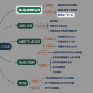 上图是美国联邦银行业监管体系的主要部门,可以看到,这个监管体系覆盖美国银行业的上中下游,而FDIC职责之一是处置美国破产银行。
