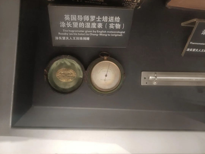 涂长望的导师,世界著名气象学家罗士贝先生非常惋惜自己得意门生不能留下来完成博士论文,临行前便送了他一只精美的微型湿度表作纪念,涂先生一直珍藏在身边,建设气象博物馆后,涂长望夫人王回珠捐赠了这件他们最心爱的纪念物。