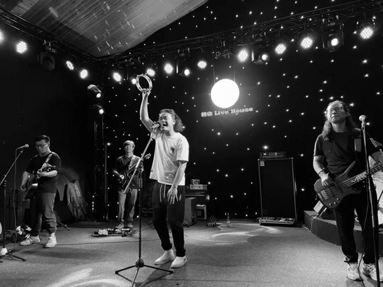 舞台上,鼓手、吉他手、贝斯手就位,厚重的鼓声响起,主唱许多用低沉的嗓音唱起原创歌曲《吾乡》。结尾处,他用家乡浙江海宁方言唱道:“吾在江南向北望,侬在梦里翻红浪,今朝桃花又开放,平谷无恙好生长。”