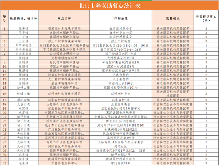 门头沟新增四处养老助餐点!全区32家养老助餐点分布地→