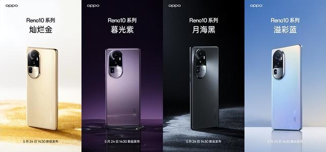 2023年5月24日,中国,深圳——OPPO今日正式发布Reno十代里程碑之作Reno10系列新品。得益于Reno系列在轻薄美学和人像科技赛道的长期深耕,Reno10系列创新地为用户带来一款兼具轻薄手感和大底潜望的人像轻旗舰。Reno10系列全系标配超光影长焦,配合OPPO独有的超光影算法,Find X6 系列同款动态光影屏,实现人像摄影的全面升级,为更多用户创造拍人入心的惊喜感。Reno10 系列包括灿烂金、暮光紫、月海黑、溢彩蓝四种全新优雅配色,搭载骁龙8+旗舰芯片平台、长寿版100W超级闪充、16GB+ 512GB 超速大内存与满血版LPDDR5+ UFS 3.1 组合,结合自主研发的ColorOS超算平台,带来旗舰级性能体验。OPPO Reno10系列新品共有Reno10 Pro+、Reno10 Pro与Reno10三个版本可选,即刻开启预定并将于6月1日正式发售。
