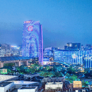 以中钢大厦和E世界大厦楼体立面为光影载体