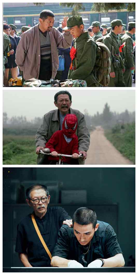 从上至下分别为罗京民出演剧集《士兵突击》、电影《孙子从美国来》、电影《人生大事》剧照。