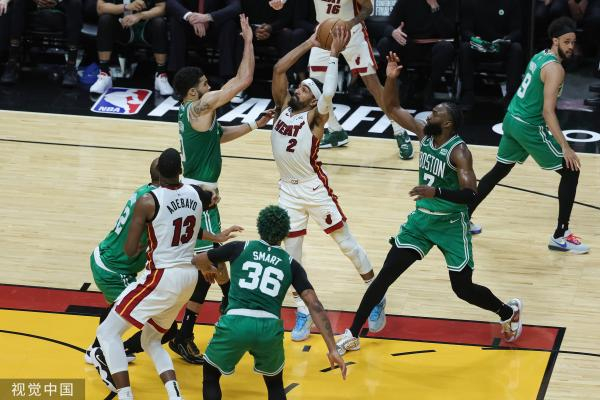 带着7分分差进入最后一节的决战,纸面实力更强的凯尔特人继续保持领先。比赛还剩8分钟时,巴特勒终于命中关键三分,帮助热火队反超,但凯尔特人立刻又拉开分差,打灭了热火的气势。
