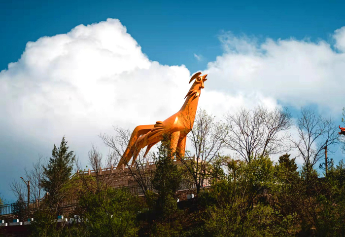 去年,金鸡台村被国家文化和旅游部评为“全国乡村旅游重点村”;发扬史家营红色精神,实施产业转型、乡村振兴,金鸡台村始终走在山乡发展前面,村内这座昂首挺胸、引吭高歌的金鸡雕塑已成为地标性景观。