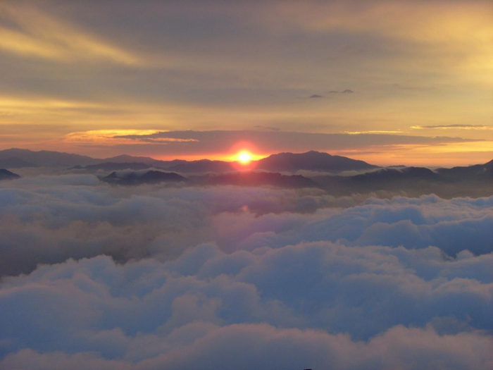百花山云海四时皆有,令人神往。清晨在百花山顶看云海日出,浩如烟海、气势磅礴,仿佛置身于仙境,可谓“云海浩瀚连天宇,霞光万道东方红”。