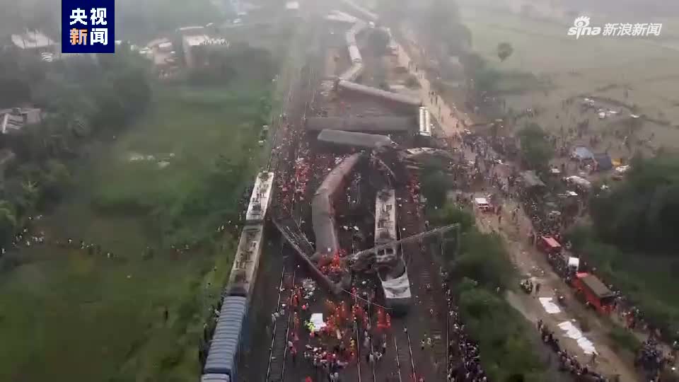 总台现场直击丨印度列车相撞事故现场航拍视频