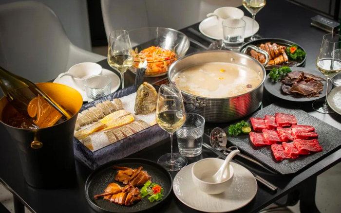 餐厅主打各种汤底的港式火锅,还有侍酒师帮你搭配香槟、葡萄酒或者精酿啤酒。