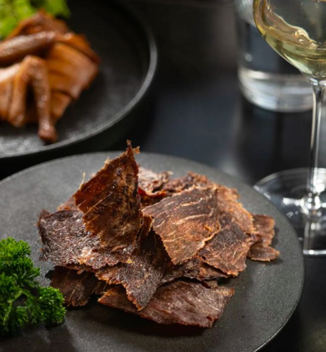 还有几道夏日下酒菜不可错过,一道是20年黄酒妙龄乳鸽,严选16天-18天乳鸽,加入20年黄酒料理入味,外皮香脆、肉质鲜嫩。另一道是自制风干安格斯牛肉,经过低温烘烤,纯手工制成。甜品可以试试杨枝甘露配澳洲指橙,层层果味交织递进,十分清爽。