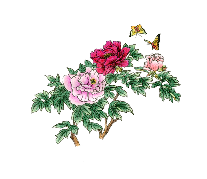 牡丹是中国花鸟画中重要的花卉题材,牡丹画最早见于东晋顾恺之的《洛神赋图》;至五代时期,牡丹画得到极大繁荣,更多融入了牡丹富贵吉祥的文化寓意;随着宋代理学、明清时期价值观的多元化,画家通过牡丹绘画以抒发个人感情。