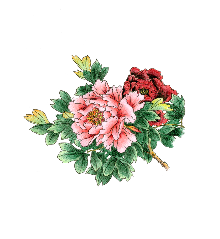 “牡”本意指动物的雄性或植物的雄株,而牡丹可以通过无性繁殖,即不借助种子而是从老植株上直接生成新植株,故名“牡”;其花多为红色,故名“丹”。