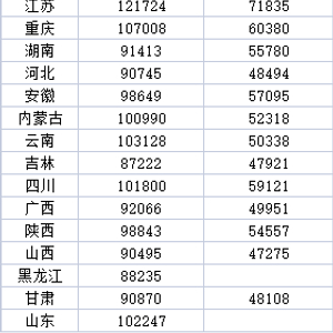 数据显示,16个省份中,有7个省份城镇非私营单位就业人员平均工资超过了10万元,其中浙江和江苏超过了12万元。