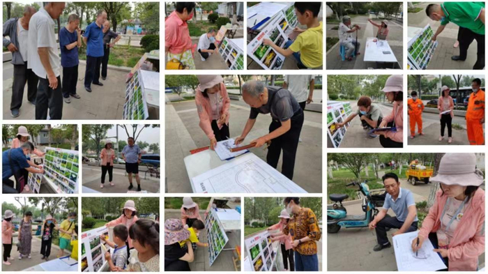 在项目施工前期,为能真正掌握百姓需求,街道与施工方通过多层面、多渠道、多形式来调动群众积极性。工作人员多次走访调研,对场地周边、场地内部、进行测量和精准分析,在形成准确详实现状图的同时,通过制作二维码及现场访谈的形式收集意见需求,周边居民群众、绿化维护工人、环卫工人、过路市民积极参与,共回收有效问卷145份。通过调研显示,居民群众对该场地的主要需求为:增加儿童娱乐设施、老年休闲设施以及文化内涵。依据民意调查及公众参与,街道与项目设计团队对接靛厂村进行讨论,多方一致认为本地块具有优越的活力区位、便利的交通条件,应建设一座“老幼共享微客厅”,并命名为“怡靛园”。让居民量身定制“自家的公园”得到了大家的肯定和点赞,真正实现了群策群力、集思广益,使居民群众实实在在地成为微空间改造的参与者。