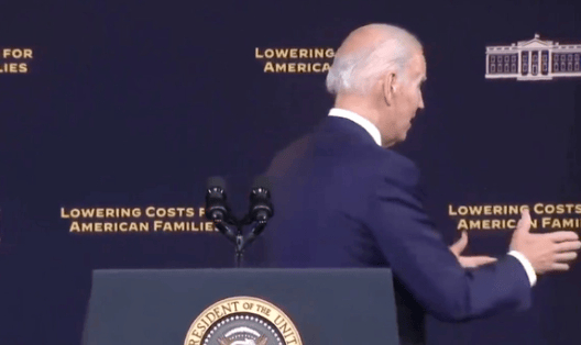 今年4月,拜登在西雅图的绿河学院发表演讲后,一度伸出双手,对着空气做出了疑似握手的动作,随后又向左转身,面对着演讲背景板站立。之后,拜登转过身来向观众挥手致意,走下讲台。