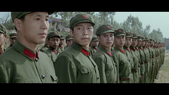 出演谢晋导演的电影《高山下的花环》前,倪大红(左二)去部队体验了生活。