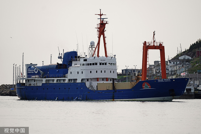 当地时间2023年6月24日,加拿大纽芬兰省,“泰坦”号深潜器母船“极地王子号”抵达圣约翰港。