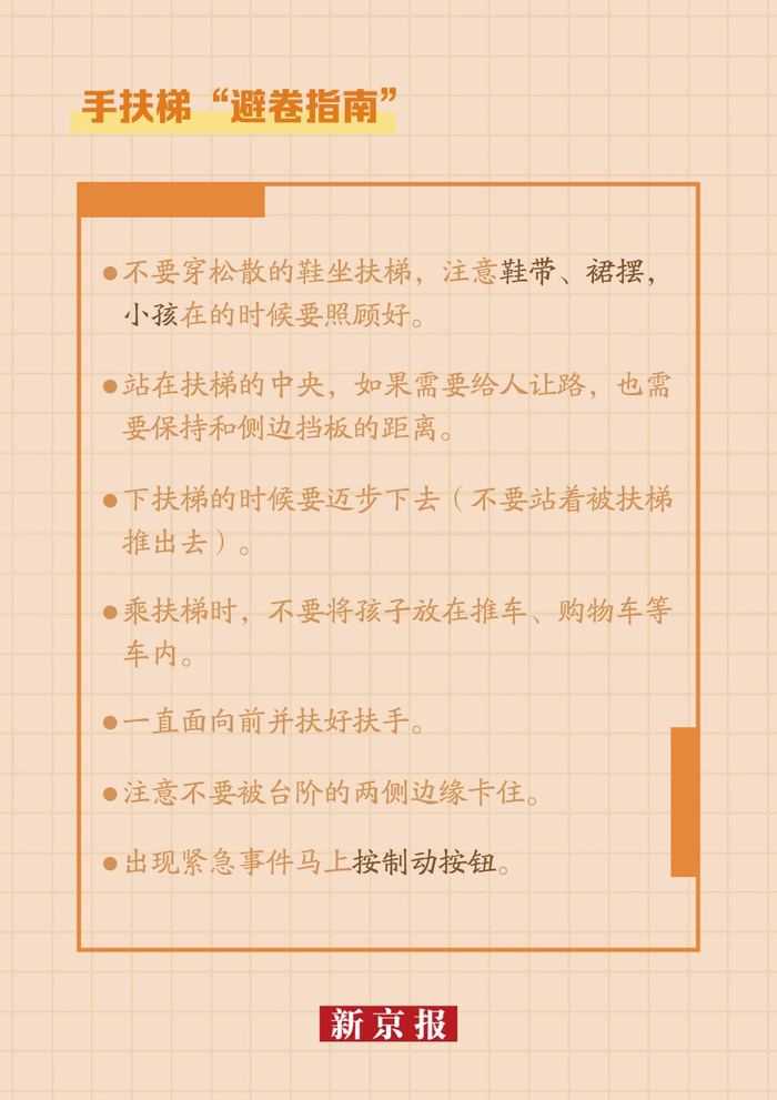 夏日穿长裙的朋友们要注意了,长裙也有被卷入手扶梯的风险。因为长裙裙摆的材质柔软,在乘坐电梯时,若没有将裙摆提起来就容易卷入梯级与围裙板之间的间隙中。