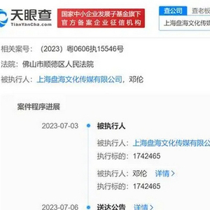 天眼查App显示,近日,邓伦、上海盘海文化传媒有限公司新增一则被执行人信息,执行标的174万余元,执行法院为佛山市顺德区人民法院,申请执行人为佛山市云米电器科技有限公司,涉及服务合同纠纷案件。