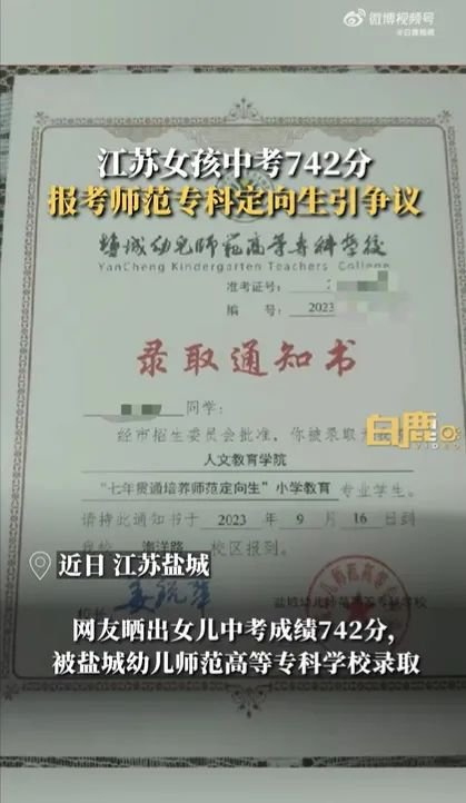 女孩中考742分报考师范专科引争议,家长:有编制!网友吵翻,媒体发声…