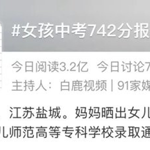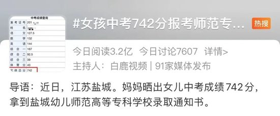 7月9日,#女孩中考742分报考师范专科引争议#话题冲上微博热搜第一,引发网友热烈讨论。