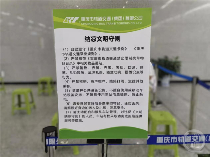 重庆交通开投轨道集团消息,三伏天来袭,为顺利迎峰度夏,在用电高峰期节能降耗至关重要,今日起,重庆轨道交通在113个车站设置纳凉区,专供市民高温天纳凉休憩。