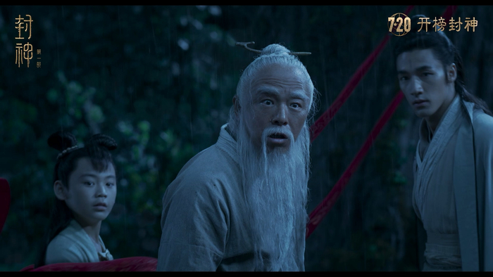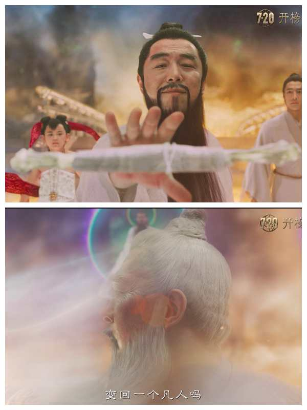 影片中,姜子牙接受封神榜前后几秒,黑发黑须就变成白发白须。