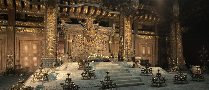 《封神三部曲》中搭建的龙德殿,金碧辉煌很有视觉震撼感。
