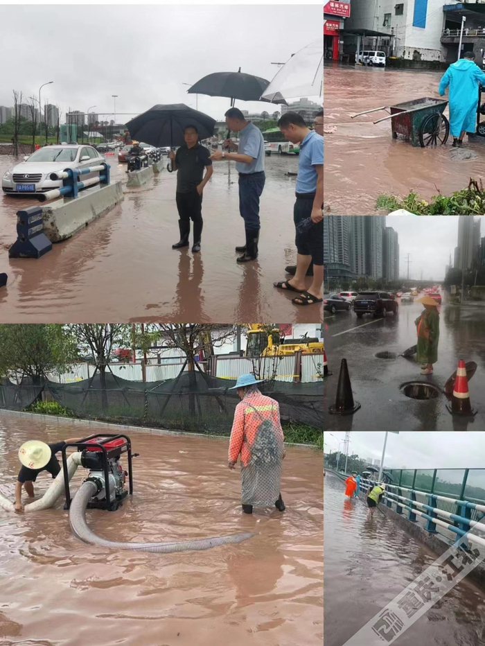 李家沱大桥北桥头和兴堰路两个点位因为积水较深、排水管网不畅,经过采用水泵车抽水排险,目前已排除险情,恢复交通。