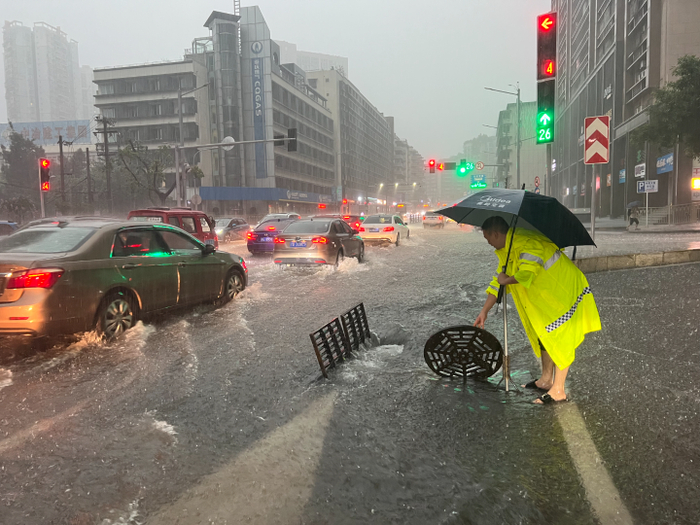 冒雨疏导。
