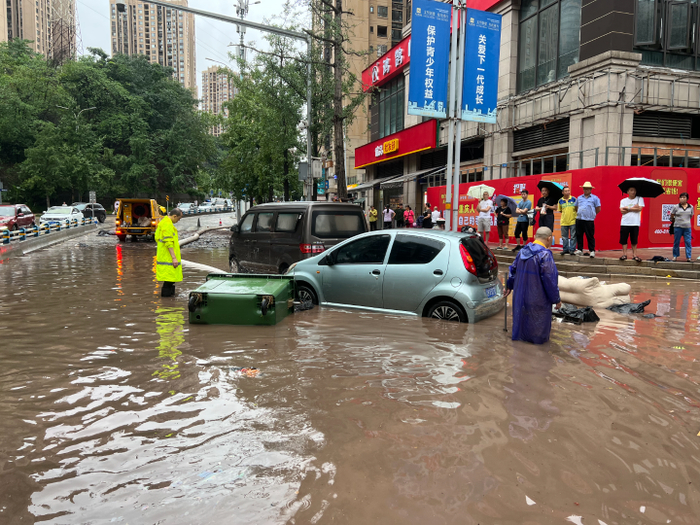 ▲抢险人员正在疏通积水。受访者供图