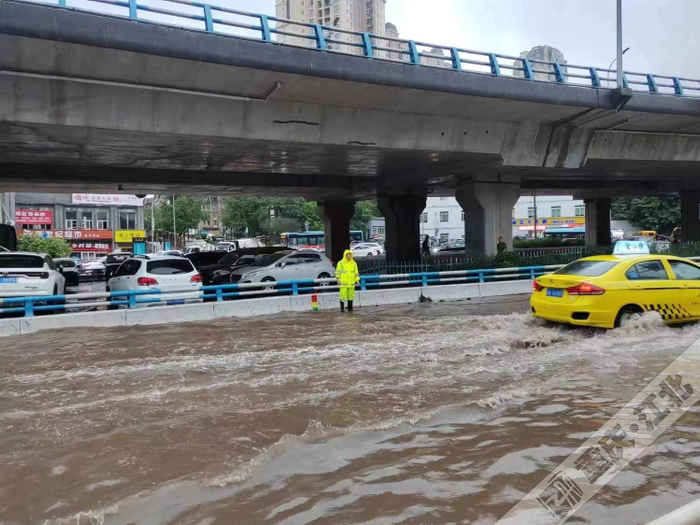 四新路牛角沱立交桥下,积水严重,交通暂时中断,相关部门正在快速处理。请过往车辆改道行驶。
