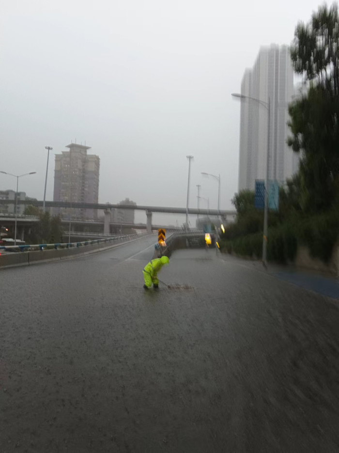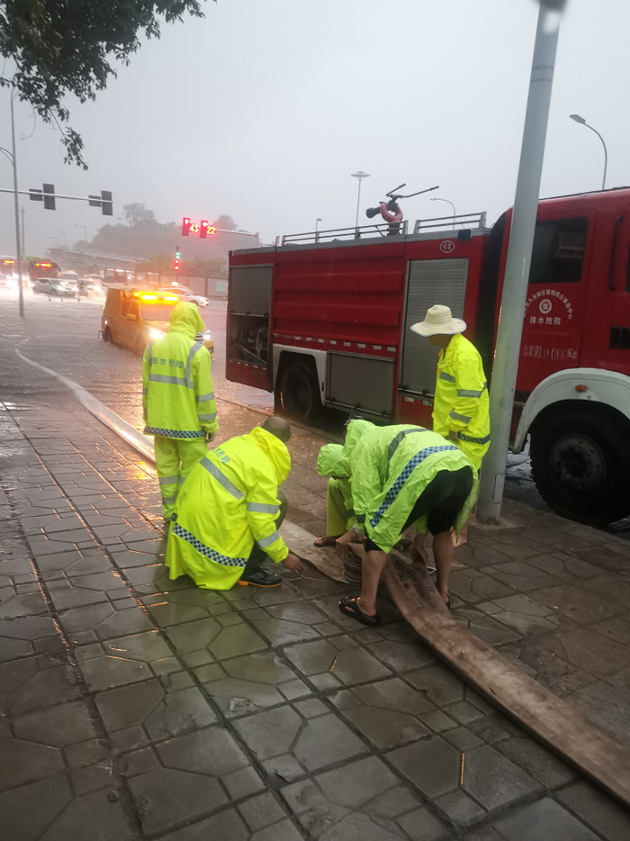 对此,该区住房城乡建委立即启动防汛抢险预案,紧急调度43名抢险人员、7台载人车辆、2台特种车辆、2台抽排设备,第一时间赶赴现场。抢险人员冒着大雨,采取清掏边沟,揭开水篦、井盖、抽排等方式进行处置。