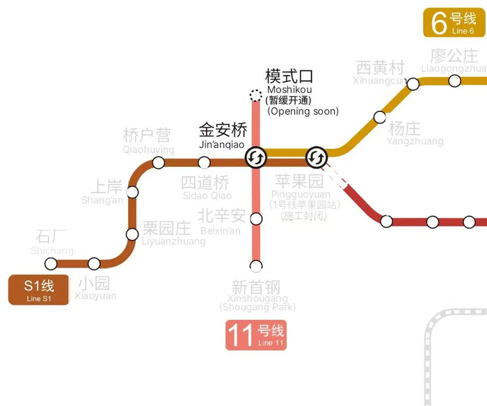目前到达模式口的地铁线路有S1线和6号线,11号线即将开通,这让我们的出行愈加方便。