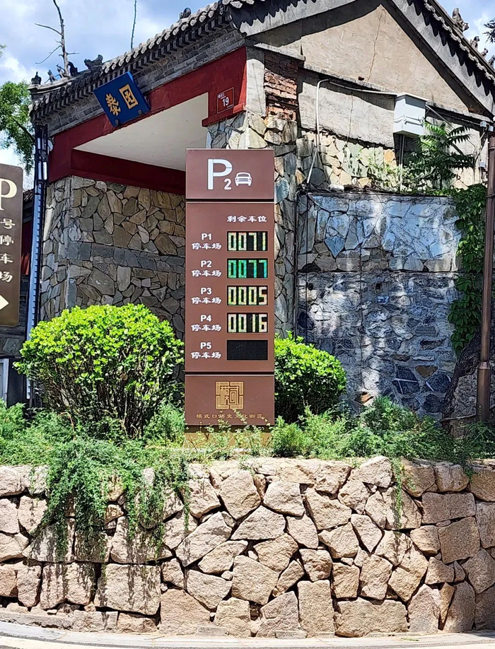 在模式口停车场入口处,您可以看到模式口4个停车场车位剩余情况,不用担心来回找车位问题。提醒您,在节假日前往模式口历史文化街区游玩时,尽量选择公共交通工具哟!