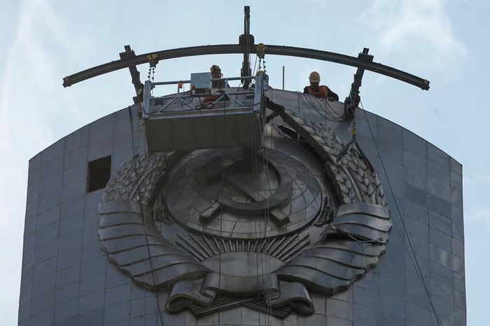 [环球网报道]据《基辅独立报》7月30日报道,拆除基辅祖国纪念碑上苏联国徽的工程已经开始,将在8月24日乌克兰独立日之前完工。