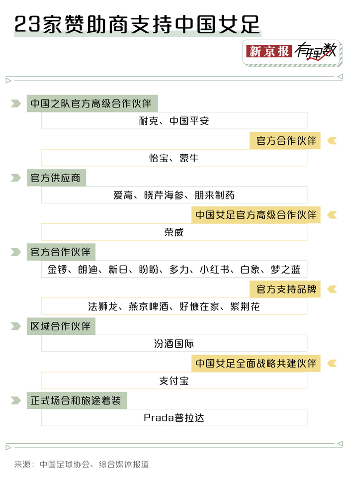7、第一财经资讯:中国女足背后的赞助商:屈指可数,与男足成绩挂钩