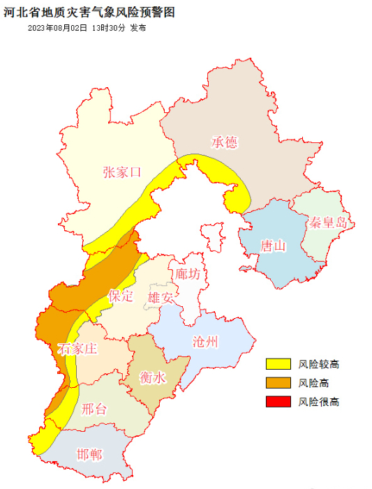 河北省自然资源厅和河北省气象局8月2日13时30分联合发布地质灾害气象风险预警: